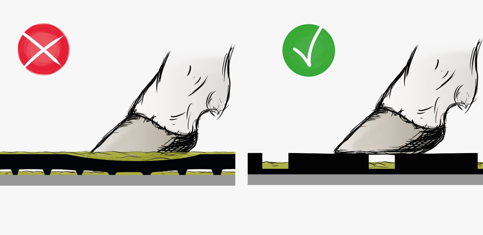Как и все заболевания копыт, цифровой дерматит оказывает непосредственное влияние на самочувствие и продуктивность. Болезненные поражения ограничивают подвижность коров, уменьшают частоту их перемещения к кормушке и стойлам и усиливают стресс. Они также являются входными воротами для других инфекций. Причины многочисленны и часто связаны между собой: постоянная влажность, истирание бетона, застой выделений. Когда копыта остаются влажными, кожа раздражается. Слишком гладкий или абразивный пол вызывает скольжение и микротравмы, которые облегчают проникновение бактерий, а наличие камней или неровностей также может поранить животных. В долгосрочной перспективе эти повторяющиеся воздействия ослабляют копыта и ставят под угрозу здоровье поголовья.